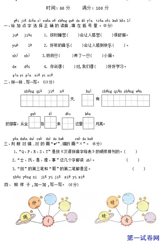 当前位置:免费教育资源网 → 下载 → 语文试题 → 一年级→ 2024统编版一年级下册语文期中综合复习 免费下载