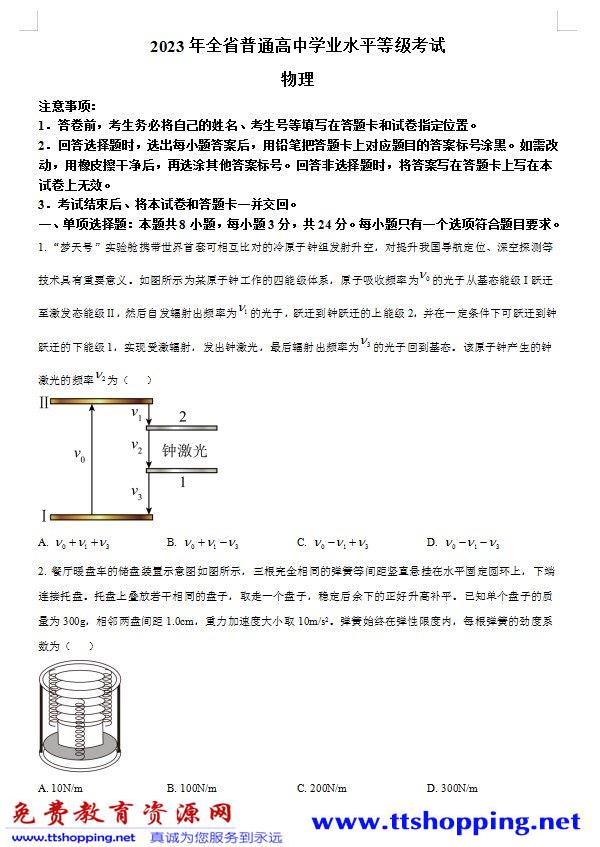 当前位置:免费教育资源网 → 下载 → 物理试题 → 高考试题→ 2023年高考山东卷物理真题(原卷版) 免费下载