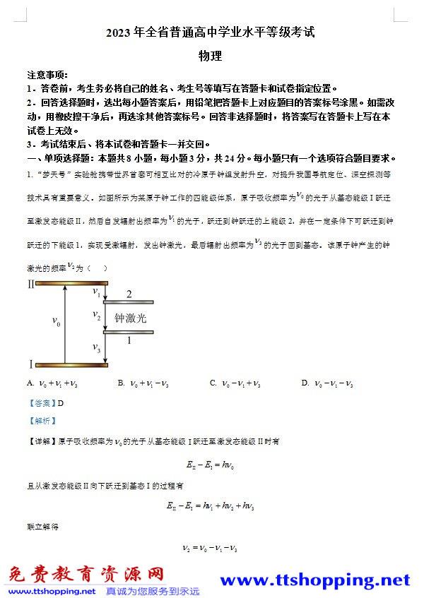 当前位置:免费教育资源网 → 下载 → 物理试题 → 高考试题→ 2023年高考山东卷物理真题(解析版) 免费下载