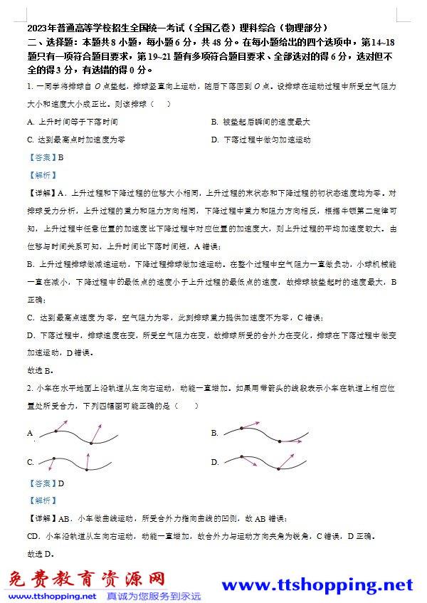 当前位置:免费教育资源网 → 下载 → 物理试题 → 高考试题→ 2023年高考全国乙卷物理真题(解析版) 免费下载