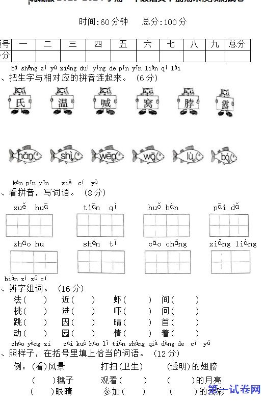 当前位置:免费教育资源网 → 下载 → 语文试题 → 一年级→ 统编版2023-2024学期一年级语文下册期末模拟测试卷 免费下载