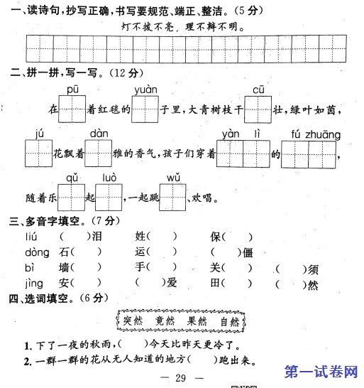 当前位置:免费教育资源网 → 下载 → 语文试题 → 三年级→ 2020年三年级上册语文期末试题7部编版PDF无答案 免费下载